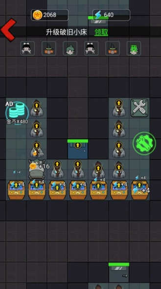 3、进入房间后直接上床,通过睡觉涨金币,建造装备,无论发生什么事千万不能下床,如果有怪人破门而入,也不要下床