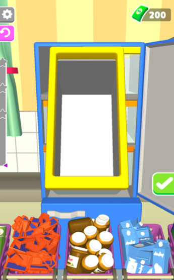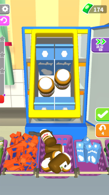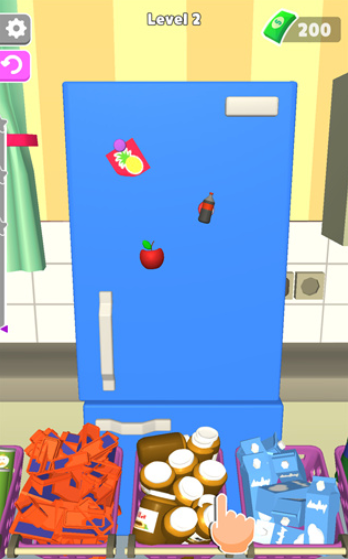 装满冰箱无限金币版游戏玩法非常简单,玩家在游戏中可以看到每个关卡所给到你的各式各样的物品,在这里你需要将它们进行分类并成功装进冰箱,玩家需要使用冰箱货架上的不同物品、杂货、饮料和更多物品进行填充,并尝试将它们全部装满,一个个清空你的购物篮,找到完美的分类地点,非常有趣。此外游戏提供了撤回的设定,就是当我们放错了的时候,我们可以将其撤回重新放,以此来保证我们成功。