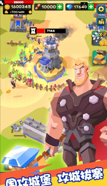 放置围攻破解版游戏已经破解成了免广告获得奖励,这是一款即时战略类游戏,我们要根据敌方的位置阵型,对自己的军队进行排布,升级培养自己的英雄,提高战力,出战敌军,攻占敌军的地盘,超多战役等着你运筹帷幄决胜千里。
