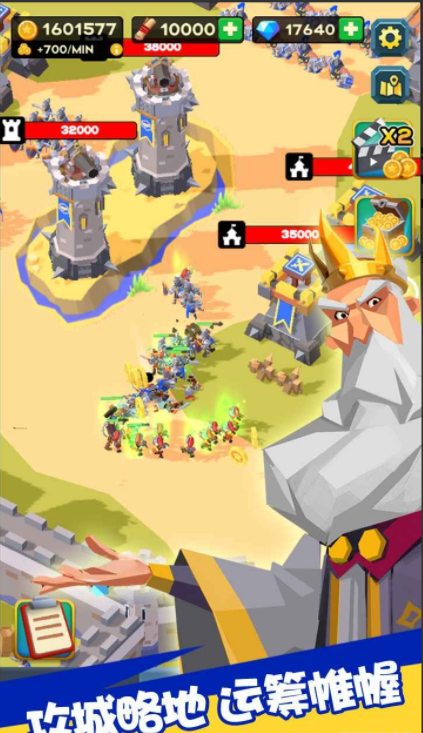 在游戏中你需要表现得像一位国王,指导自己的军团如何征服基地、箭塔与城堡。