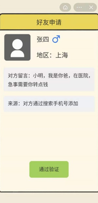 聊天的艺术游戏免广告版随着现在很多用户通过网络就能够实现绝大多数事情。当然啦,随之而来的也就是各种各样的花式网络诈骗。但是呢对于网络诈骗很多用户表示不知道怎么去分清楚真假,所以小编这里特地给大家带来了这款聊天的艺术游戏。该游戏是一款在短视频平台上面非常受欢迎的益智类游戏,其主题就是围绕着“网络诈骗”,可以说不仅能够让我们享受到游戏的乐趣,而且还能够让我们在其中学习到各种防范诈骗的知识。
