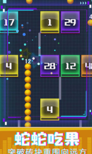 3、这个游戏不仅需要收集球,还需要打到方块来抵消方块上的数字才能下去。