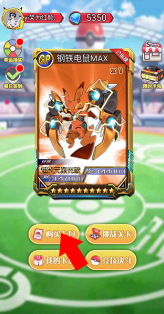 1、通过一些简单的教程关卡后,然后我们回到主页点击购买卡包选项