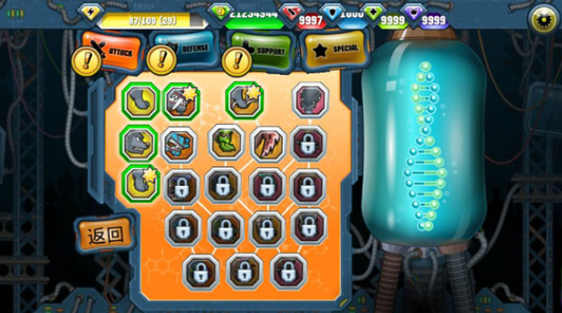在游戏的实验室里头,能够给它加入不同的强化基因进行改造