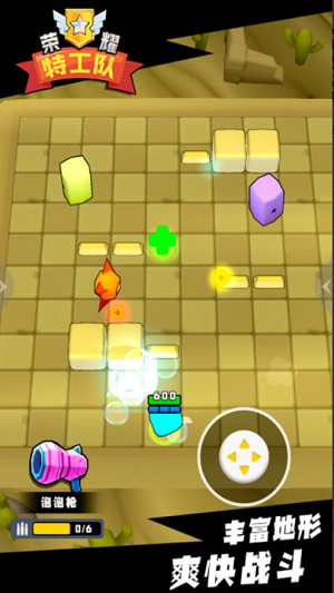荣耀特工队安卓版游戏中玩家在一个竞技场内通过不断射击来获取金币,不断闯关过关完成任务后,将会获得奖励,我们可以去购买新的武器,或者升级原本的武器,或者购买新的角色,每个角色都有自己独特的技能,可以更好的帮助玩家清理战场。