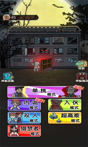 猎梦宿舍游戏为大家带来了联机版,这里超多的模式可以供大家来挑战,比如单挑模式.内诡模式等等,各种新奇的道具和技能都能使用,赶紧上床获取金币,解锁武器道具来抵御猛鬼攻击,和队友一起赢得胜利吧!