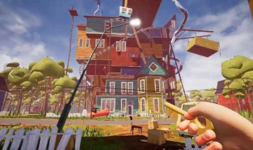 这是一款十分出色好玩的解谜探索逃脱游戏。玩家在游戏中被困在一个十分大型的房子建筑里面,玩家需要根据各种办法寻找各种工具逃离可怕的房子,并且要一边提防邻居的巡逻