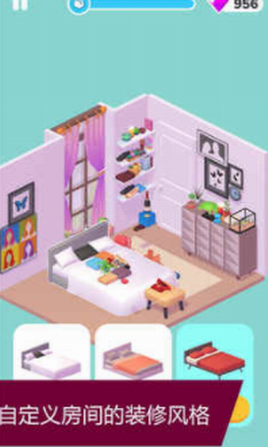 在游戏中玩家可以进行各种家装风格尝试,打造一个精美的房间,内心会很有成就感。