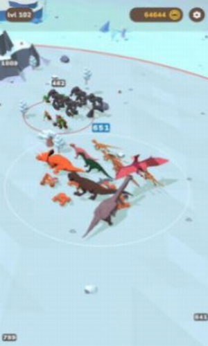 这是个以合成为主要玩法模式的手机游戏,与敌人作战,打败别人家的恐龙,