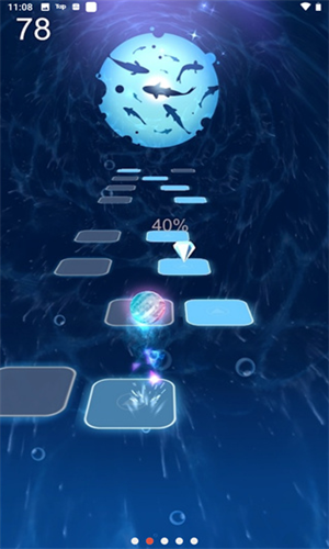 2、跟随音乐旋律,让小球准确跳到砖块上,获得积分加成,可更换挑战曲目,随心所欲完成比拼;