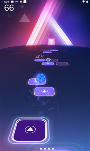 1、总体来说,游戏难度不大,主要考验的还是大家的灵活和反应能力,随着音乐节奏的响起,提前注意前方出现的物块位置,然后控制者小球左右移动来向前跳跃,期间随着难度的加大,速度会越来越快,而且沿途的障碍也会愈加困难,更换更为靓丽的小球,挑战更具难度的关卡吧!