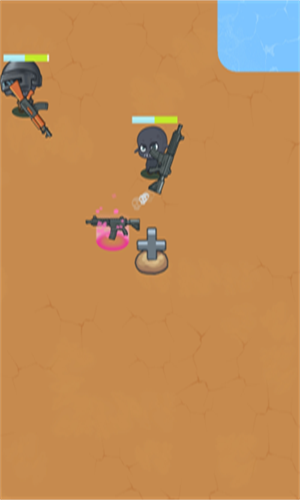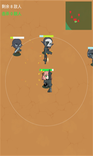 游戏是根据微伞小游戏改造出来的,移除了广告,长按屏幕移动,会自动瞄准射程以内的敌人,击杀敌人拾取枪械道具,箱子里面有道具可破坏获得,绿色是毒圈,巧妙利用地形,可以获得优势。头盔和护甲消耗完毕才会扣自身血量,花生可以回血,最后一个敌人是巨大化boss,大家可以秦王绕柱打败它!