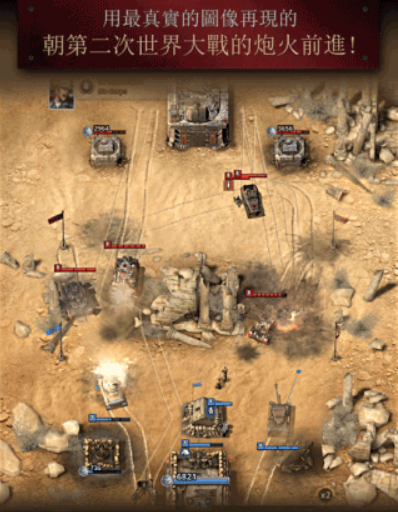 1、请集结透过考证真实呈现的步兵、车辆、战车、建筑物等多样兵种的兵力,组成最强的部队以争取胜利。其中还有模拟真实人物的战争英雄唷!
