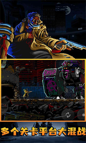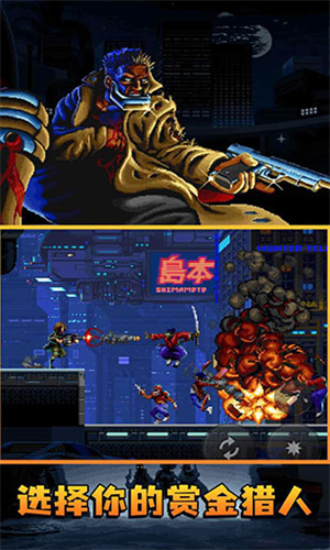 未来城市充满混乱的街道中,黑帮掌控一切,警察如履寒冰,只有赏金猎人才能将城市从罪恶的堕落之掌中解救出来。将见不得光的地下黑社会一网打尽,在这款硬派搞笑动作类街机射击游戏中大开杀戒。