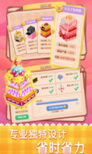 穿上烘焙师的帽子和衣服,让我们逐一的进入挑战的项目吧。梦幻蛋糕店破解版是一款以经营蛋糕店为主题的经营类游戏。游戏的画面采用迪士尼式的卡通风格,玩家在玩游戏时仿佛是在看电影般,如此美妙的画面玩起来也是一番享受。在游戏过程中,玩家将扮演既是店长又是出事的雪儿,您将通过辛勤的烘烤蛋糕赚取金币,并将所赚取的金币升级商店和设备,打造属于您的终极梦想蛋糕店!游戏以做蛋糕为主,玩家在游戏中需要经营一个蛋糕店,需要对店面进行装饰,不断升级店面以及新品