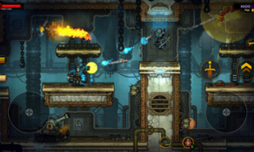 2、360°射击的平台动作游戏。像个真正的硬汉一样跳跃、冲刺、射击、斩击并把敌人炸上天吧;