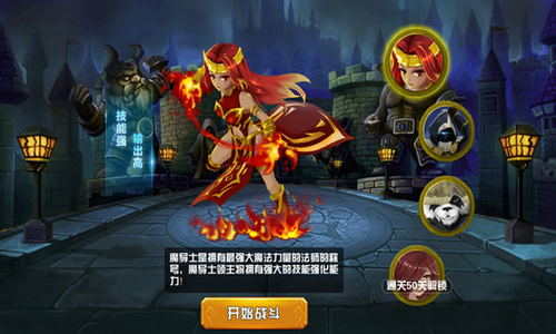 在这里你将夺回属于你的城堡,击败怪物的入侵!在这里,你不仅仅能玩到塔防的元素,还能体会单机RPG的养成快感,在这个战场中,拥有你所能支配的强大魔法力量。几十位英雄,十几种陷阱供你挑选:风行,恶魔,熊猫酒仙,小冰冰听从你的召唤,为你效力,在战场中你的操控将会令他们发挥最强的实力。