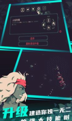 2、在这个roguelike生存游戏中,通过选择不同的升级,每场比赛都可以有不同的战斗模式,选择你的英雄;