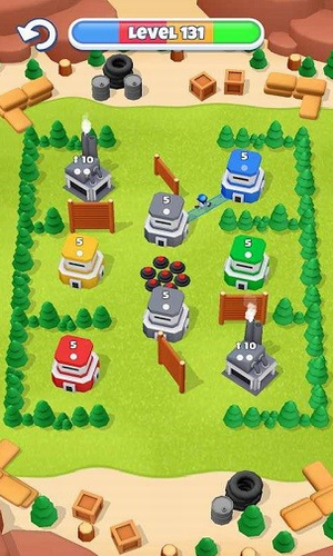 2、而是通过重复拖动相同防御塔来叠加升级,同时点击屏幕上方的攻击按钮还可以派出士兵。