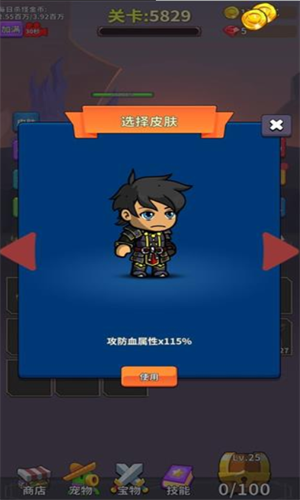2、推图到50关,解锁抽宠物;推到100关,解锁合成装备。