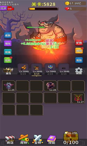4、打不过boss了就把装备强化一下;基本三个小时能到300级,开始做神器。