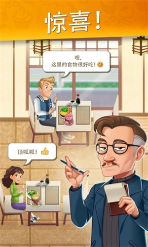 不同的主题餐厅大大增加了游戏的新鲜感,难度的适中也不会让玩家卡在一章(之前玩一个游戏设置不科学卡死在第二章里真的想骂人)游戏的每一个餐厅的关卡不同于常规的可重复性关卡,一关过了直接进入下一关为累积制且无上限,不可以再玩之前关卡。玩到六十关即可解锁下一个新餐厅,可以自由选择玩新餐厅也可以继续玩这个。