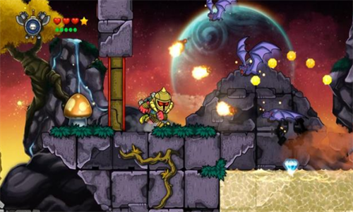 3、 游戏的操作类似于大多数水平冒险游戏。左下角的虚拟按键控制角色的左右移动,右下角的两个虚拟按键分别是跳跃和攻击。