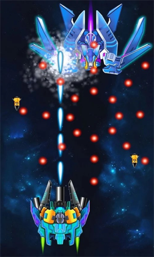 7.消灭所有的敌人,并对战机不断进行改造,驾驶最新锐的战机在宇宙中抵御外星人的舰队。
