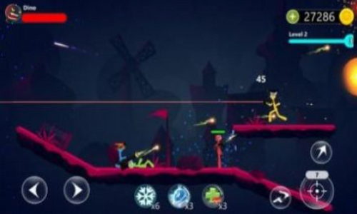 1、多种不同的火柴人角色供你使用,他们都有自己的战斗能力;