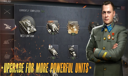 经典二战背景下的战争策略游戏。玩家扮演指挥官重回二战战场,解锁各个兵种,装甲坦克飞机大炮武器,排兵布阵指挥作战,征服这个战场。