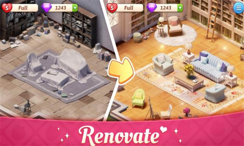 游戏不仅有迷人的故事,还有设计装修经营后成就快感