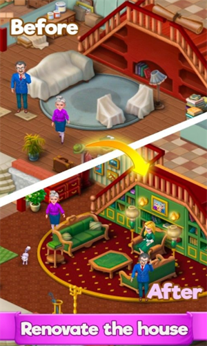 解锁新房间并进行全面装修,因此没有人可以说有海啸,也没有人可以透露隐藏在房子各个部分的所有秘密。完成任务并获得丰厚的礼物,这将大大有助于你的康复。收集经验并升级游戏,成为最酷的合并大师。