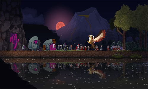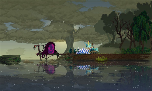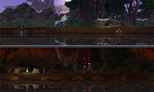 1、虽然画面像素复古,但画面结构却一点不简单,良好的光影处理,远处巍峨的高山,近处茂密的树林,水中甚至还有倒映,细节处理非常到位。