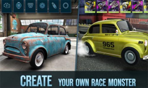 3、选择从庞大的汽车收藏中选择任何模型,并创建一个真正的赛车拖拽怪物。无论是古老的经典还是现代的超级跑车。填满你的车库。