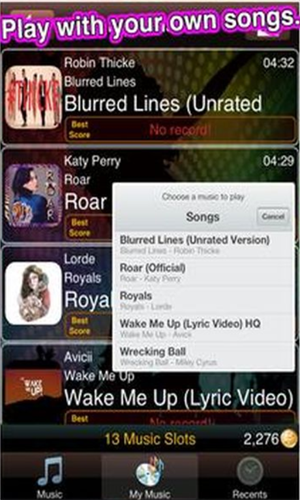 2.只要玩家给200个游戏币就能够选择一首自定义歌曲进行演奏!而且买了之后就不会再消失囖!玩家可以随时随地演奏自己的手机里的歌曲!