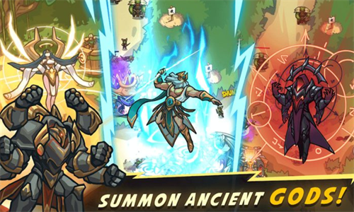 召唤5位史诗般的古代神明来帮助你战斗:木星、冰川、索尔、尼克斯和阿修罗。