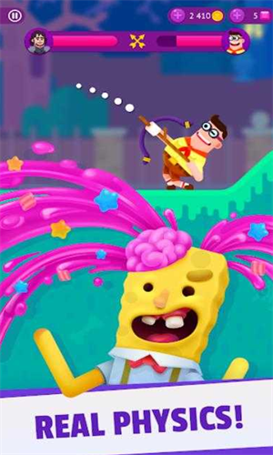 该游戏整体采用的经典卡通风格,搭配的色彩更加鲜艳,画风更加可爱,完全适合所有不同年龄级的各路玩家。游戏核心为关卡制,在不同的关卡挑战中,玩家需控制抛射的角度和力度来完成任务目标,在你成功击中对手的不同位置处会判定出不同的伤害值,从头部依次往下,伤害值逐级递减,待完全击倒对手还有丰厚奖励可拿,其过程十分的欢快。此外,在Bowmasters游戏中还有多种角色可选,甚至还有许多造型独特的强大武器存在,解锁并加以使用,可助你更快完成目标关卡任务哦,另外,该游戏准备了联机功能,如此好玩的一款手游怎能不叫上伙伴一起体验呢,联机爽快对决,检验一下真实玩家的线上对抗,看看你是否有实力成功击杀对手,喜欢的朋友就抓紧时间体验吧!