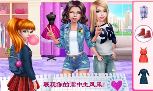 在游戏中,玩家将成为一名女高中生,通过搭配衣服和妆容,打扮得漂漂亮亮,成为全校最受欢迎的人!此外,你可以和各种类型的男生约会,感受谁将成为你的男朋友,丰富的高中生活等着你。