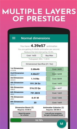 1、反物质维度游戏的基础总体目标是做到无尽并得到无尽等级