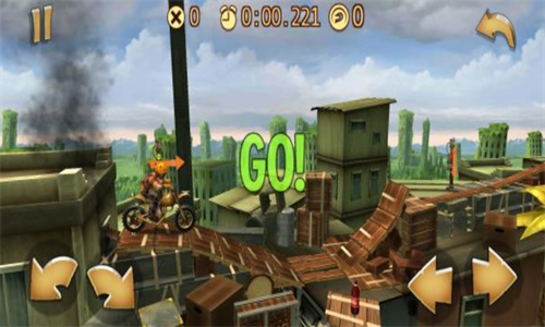 3、玩家将在游戏中操控摩托车手,在乱石丛生的荒野和大厦林立的都市中进行特技赛车;