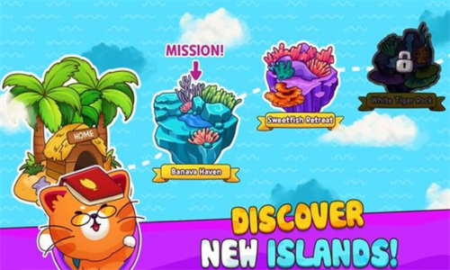 2、简单的操作方式,控制你的猫咪耐心的垂钓,升级自己的鱼竿,钓起来更多鱼;