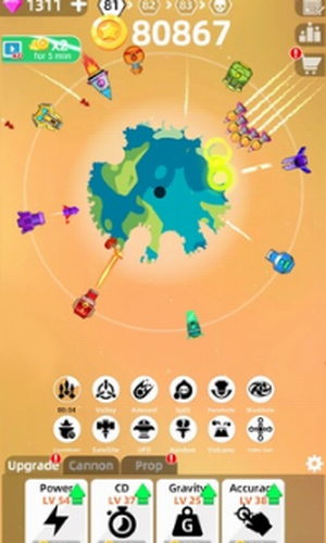 3、每个道具都有不同效果,攻击地球时可以选择不同方式。