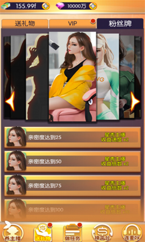 《我的女主播破解版无限资源最新版》是一款非常有趣的经营策略类手机游戏,该款游戏采用了精致的卡通动漫风格而设计,整个画面色彩细腻且画质高清,给玩家更好的视觉体验,其玩法有趣,游戏中我们将扮演一名经纪公司里面的领导人,然后需要招募一些女主播到自己的旗下,接着就是不断地砸礼物,将主播的人气提高,从而获得更多的粉丝,更多的流量。而当我们手下的女主播达到一定的数量之后,我们还可以选择与其他的主播进行PK,从而进一步提高自家主播的名气。欢迎感兴趣的朋友下载。