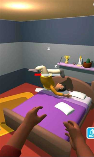 1、踢他,将他扔下床等等,诸多玩法,自由尝试,成功完成叫醒任务。