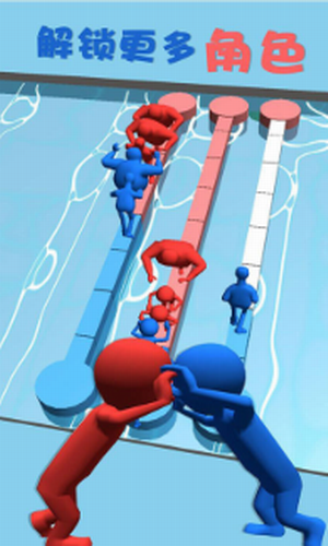 成为红蓝两队,可以展开一场较量,并一决胜负。红蓝推手破解版是一款非常精彩的竞技小游戏,玩家可以控制自己的小人来进行竞技比赛,不同颜色的小人代表着不同的帮派,和对手进行竞技,看谁能够完成任务,操作没有太大难度,玩家们可以轻松的上手,各方都派出自己的选手,趁着对方不稳定的时候抓住机会将对手推入水中以此来获得胜利。红蓝推手免费下载作为全新的橡皮人系列,可以让玩家在游戏中感受游戏的乐趣,从而放松自己。喜欢的玩家,快来前来体验吧。