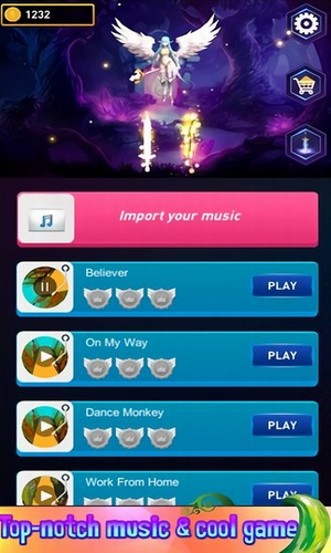 1、简单地选择您喜欢的歌曲,点击按钮以将每个击败的怪物射向生命点。