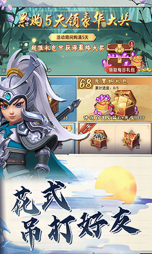 2、玩家在游戏中可以收集到有名的三国英雄,在新颖的玩法中,尝试使用不同的英雄组合搭配阵容进行对战或合作。