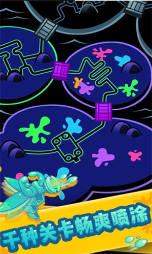 收集升级不同的喷涂道具,击败源源不断入侵的泡泡怪兽,颜料飞溅,快速融合,尽可能地尝试升级,完成任务。
