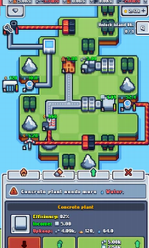 生产资源并将它们组合起来以生产更多资源。使用生产的资源和您的物流技能购买新工厂。起初,您能够生产一些基本资源,例如木材和石头。然后迅速转向更复杂的产品,例如混凝土和塑料。