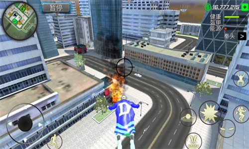 2、游戏的地图精致庞大,在这片地图上你是唯一的超级英雄,所有的市民都靠你来守护。